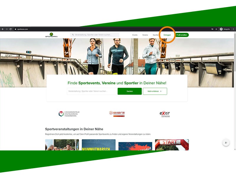 Solltest du noch für keinen persönlichen Sportler/innen-Account registriert sein, so musst du Dich zuvor für einen persönlichen und kostenlosen Sportler/innen-Account auf SPOFERAN.com registrieren.